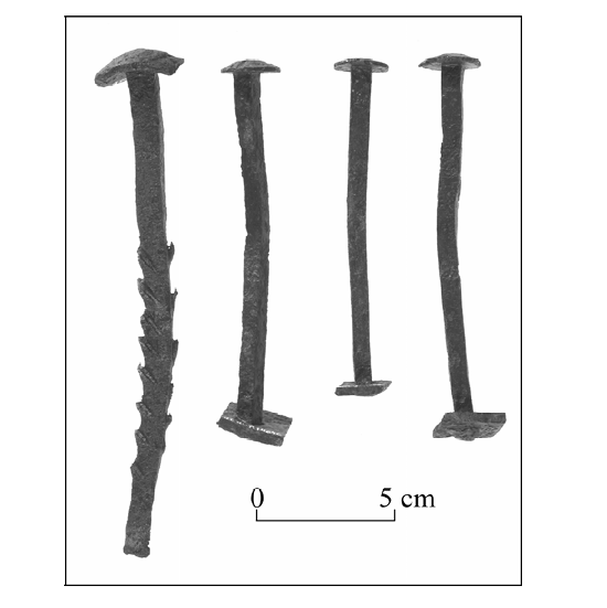 Heather Passmore was working in a trench and came upon a layer of birch bark. Then another layer, mostly birch and some spruce, was discovered even deeper. A third layer was also uncovered in the 1.4-metre-deep trench. The top two layers contained square nails, indicating a structure may have been located at the site in the late 1800s.