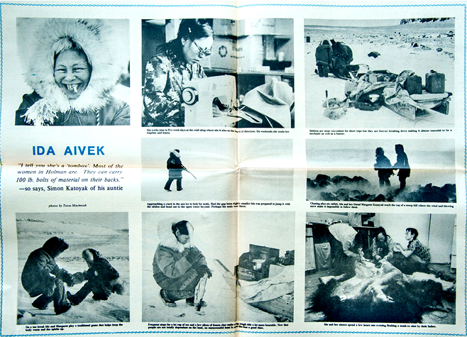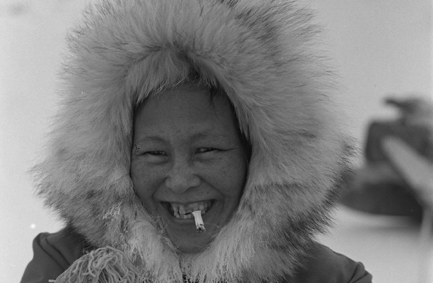 "In Holman (Ulukhaktok) I took a portrait of Ida Aivek, sitting on her snowmobile, biting down hard on a cigarette. Look into her eyes. See how friendly she is.
