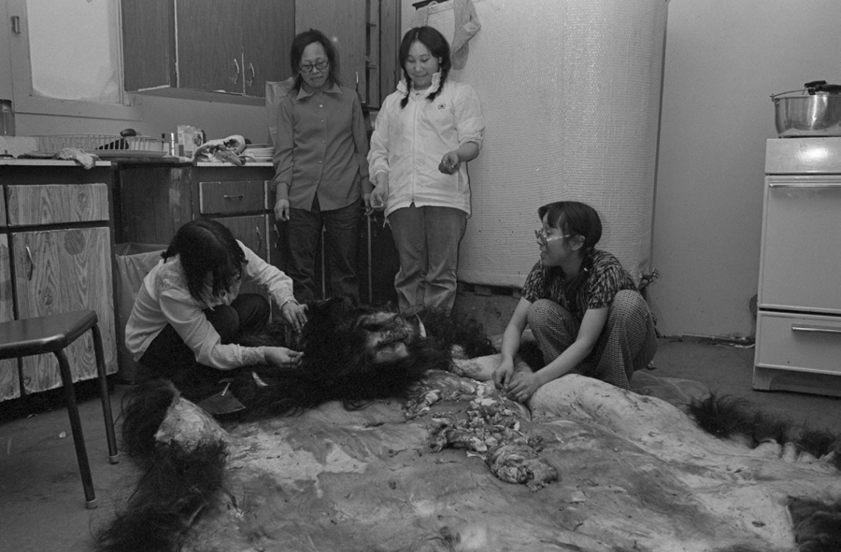 Indoor shots can be challenging. In this photo of the women preparing a musk ox, I don't have scenery. It's a kitchen. So I focused on the women, working together.