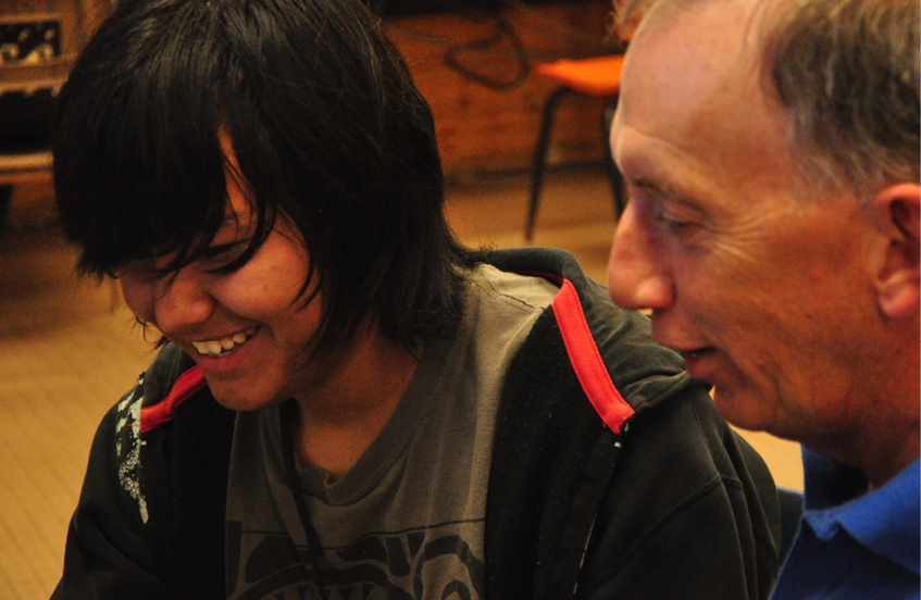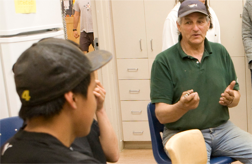 Harry Deneron had been a young, newly appointed chief when the Inquiry visited Fort Liard. He agreed to visit the class and participate in the press conference.