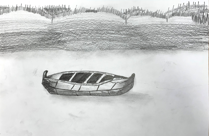 To understand the construction of an early Gwich'in canoe, they contacted Dr. Jean-Luc Pilon, an archeologist who found a collapsed canoe forty years ago. He sent photos.